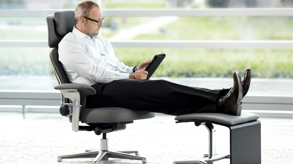 Kursi ergonomis dirancang dengan sandaran punggung yang mengikuti lekuk alami tulang belakang. Dukungan yang baik pada bagian punggung bawah (lumbar support) membantu mengurangi tekanan pada tulang belakang, sehingga mencegah nyeri punggung dan leher akibat duduk dalam waktu lama.
