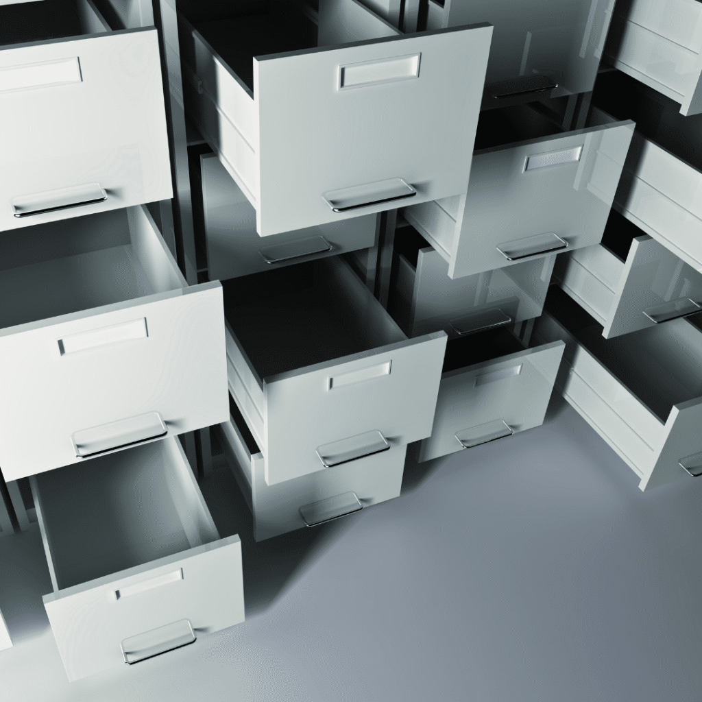 • Filing cabinet: Cocok untuk menyimpan dokumen dengan sistem pengarsipan folder.